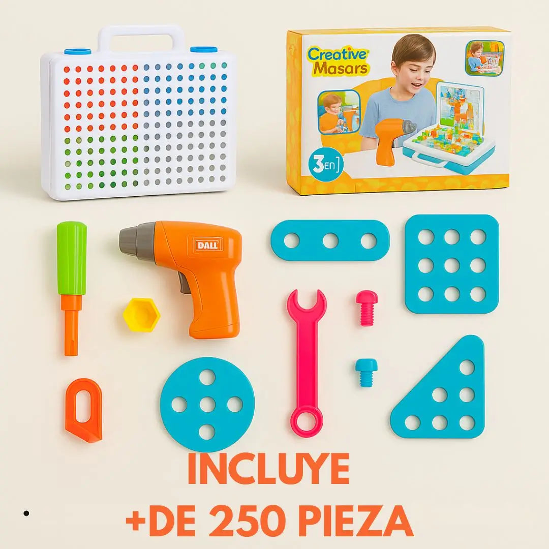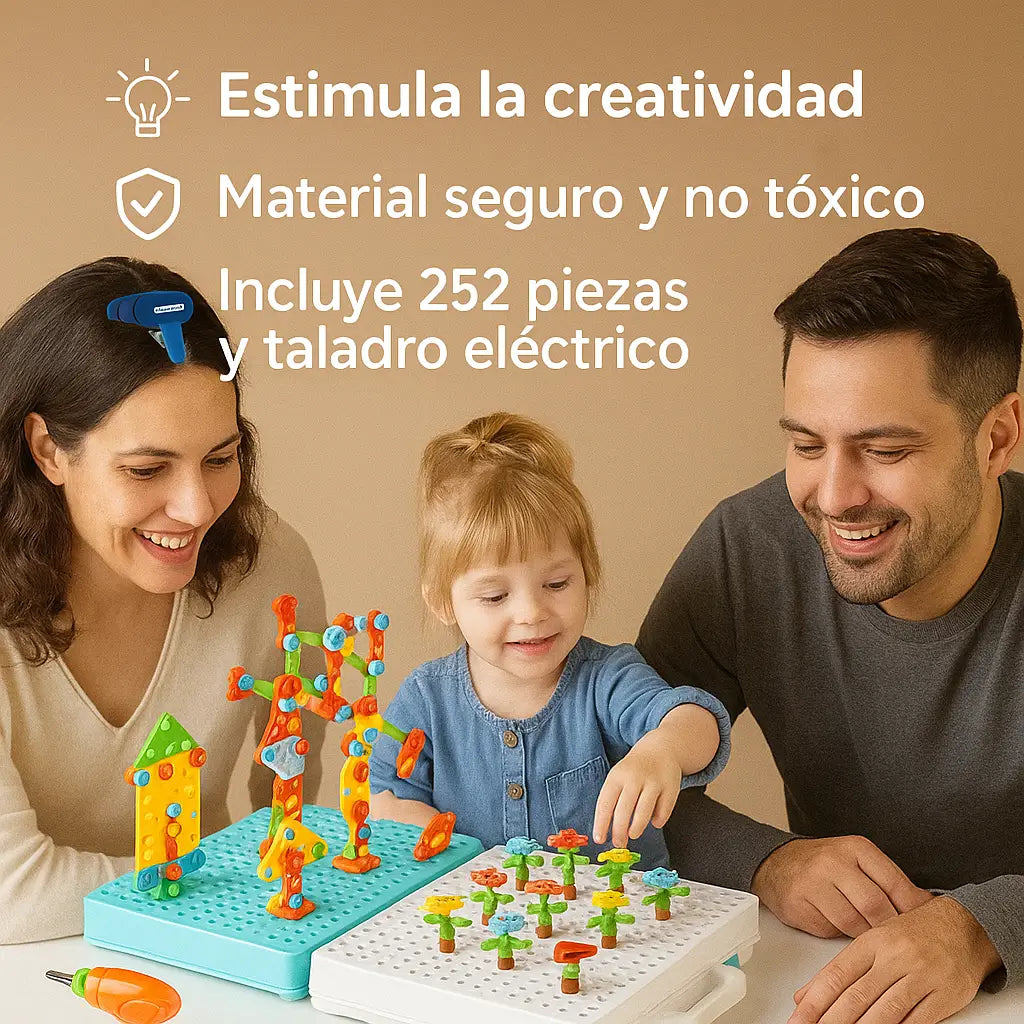 📦 Incluye 252 piezas y taladro eléctrico, máxima diversión.