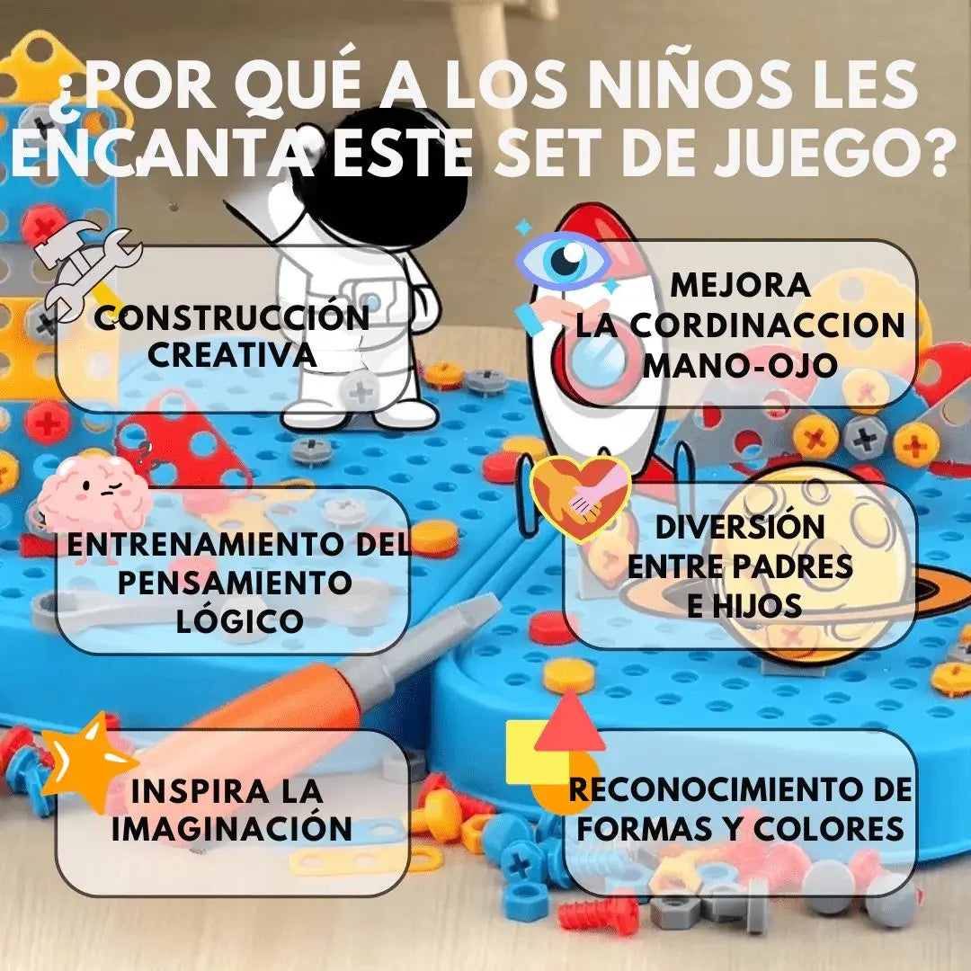 Constructor Kids® Juego Educativo 3D Más de 250 piezas 🧩 + taladro eléctrico seguro 🔋