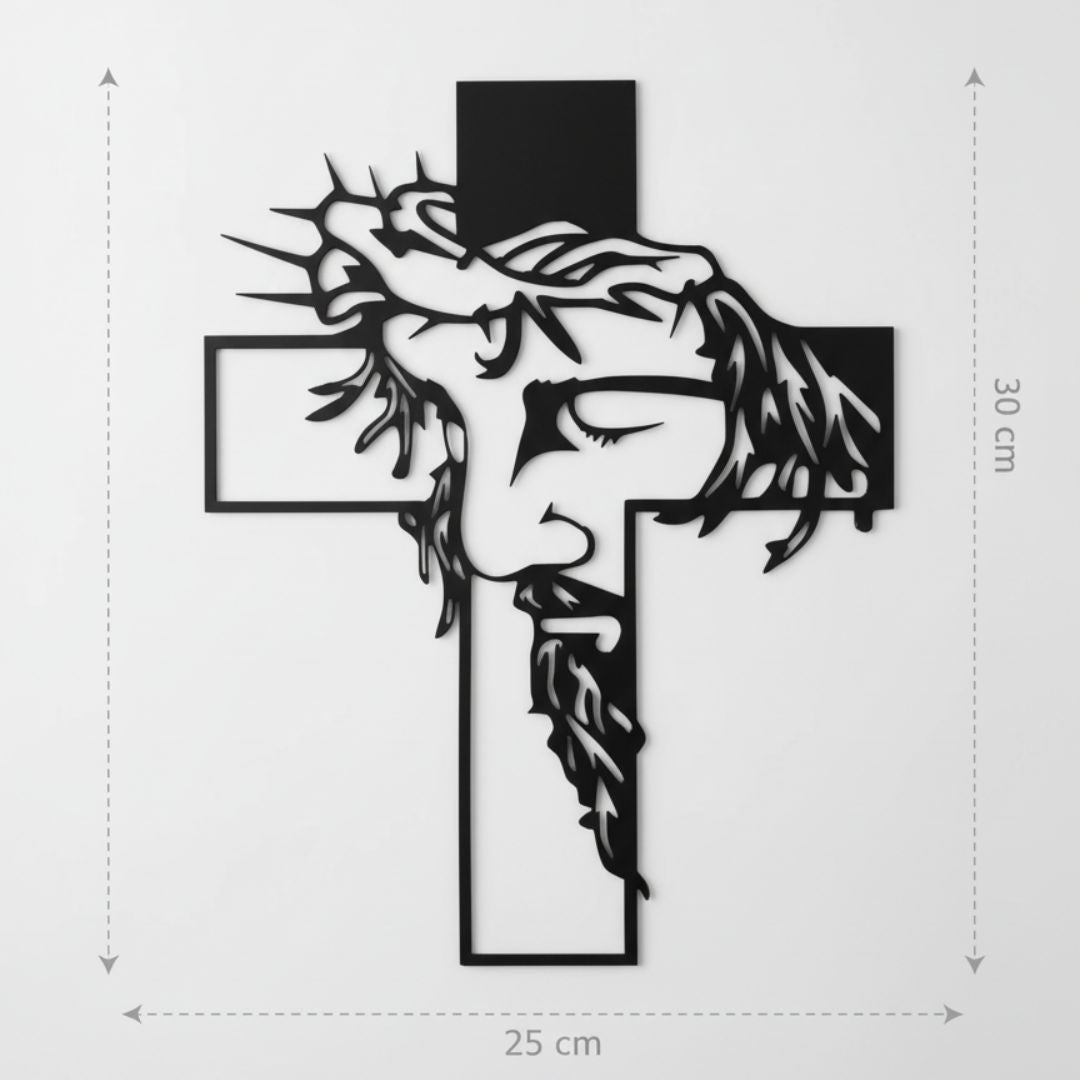 El diseño metálico moderno de la Cruz Jesús combina arte y espiritualidad, ideal para cualquier espacio del hogar, oficina o capilla.