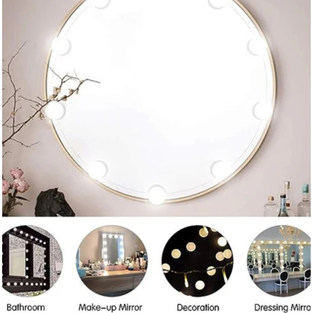 con el Kit de Luces LED para Espejo Estilo Hollywood puedes transformar completamente tu espejo y el ambiente de tu habitación.