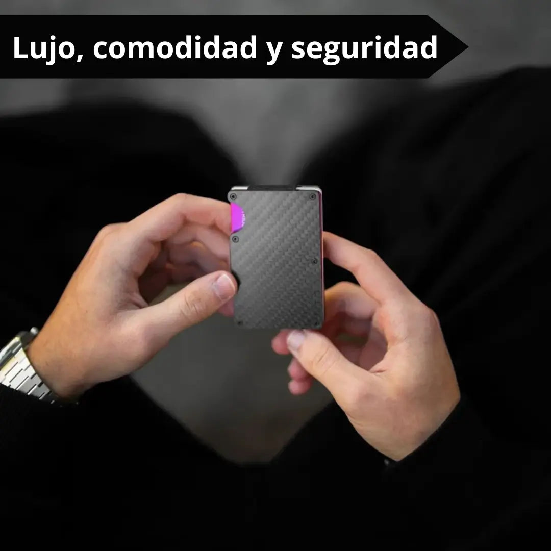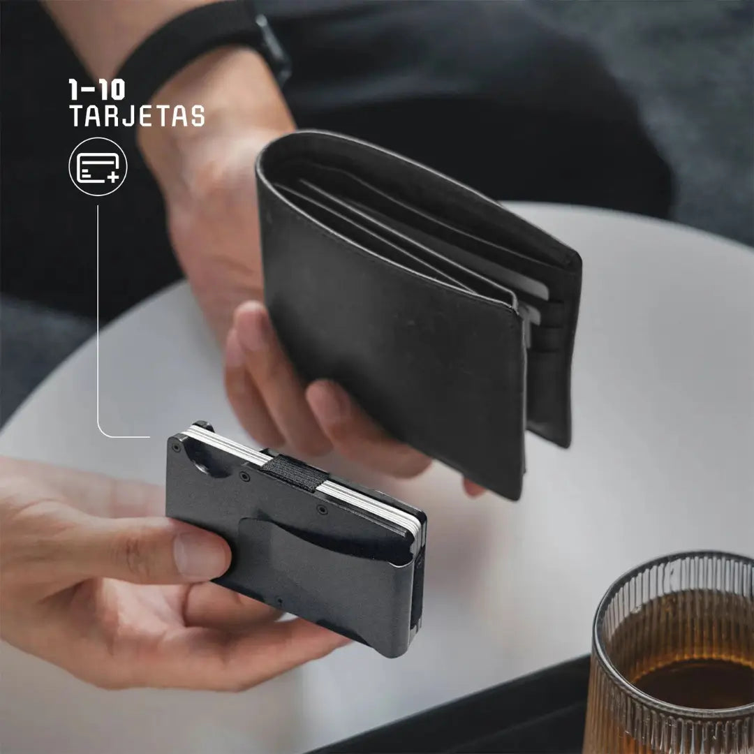 Una fusión perfecta de estilo y funcionalidad. Delgado, elegante y seguro, lleva hasta 15 tarjetas y aparte tu dinero en efectivo